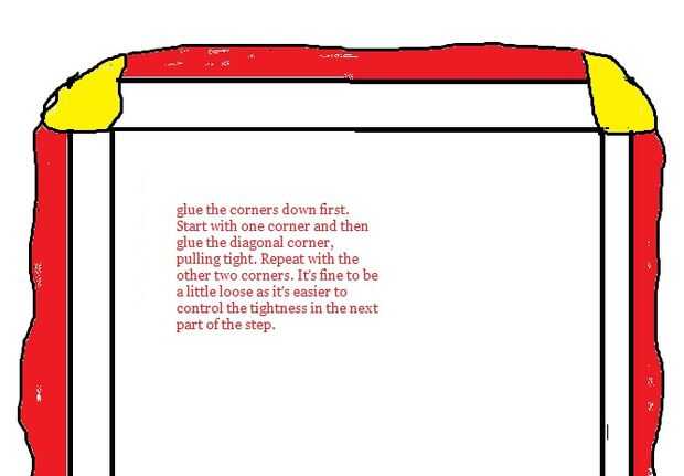 Estirar la muselina en los marcos utilizando pegamento caliente. Muselina de batallas bastante fácilmente y que no desea "prime" con gesso o algo. Que probablemente finalmente fray y caerse si se utiliza como en un lienzo normal. Pegamento caliente funciona bien para fijarla y evitar cualquier desgaste futuro. Tenga cuidado de no quemarse. Puede que necesite una de las más grandes armas de pegamento en lugar de los pequeños.