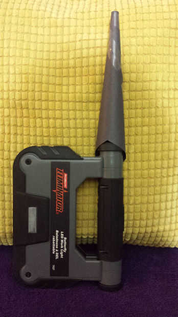 Si tienes una linterna que crea un amplio espectro de fotones (como se muestra en la imagen 3) como lo hago, se puede todavía utilizar para su beneficio, como lo hice. Todo lo que tienes que hacer es una cartulina negra y un cono (como se muestra en la imagen 1) que puede caber fácilmente la parte superior de la fuente de luz (como se muestra en la imagen 2). Usted notará la diferencia inmediatamente (como se muestra en la imagen 4).