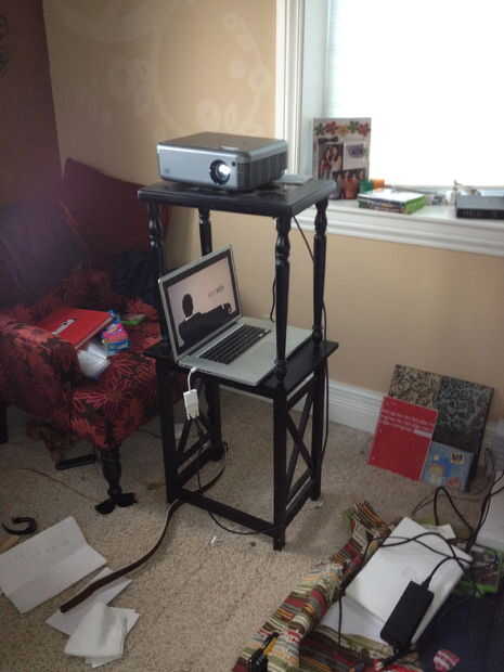 Conseguir un proyector y configurar en una altura sólida. Una vez que su sistema y nivel no tocarlo o moverlo o de lo contrario tendrás que empezar de nuevo (como hice yo). enganchar encima de vosotros tiene ordenador portátil y mostrar la imagen incluida