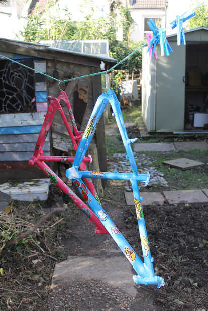 Entonces, rocíe el bejesus fuera de las horquillas y cuadros con más barniz. No seas tímido con ese tipo de cosas, pero no demasiado grueso en uno ir o se ejecute y apariencia desordenado.