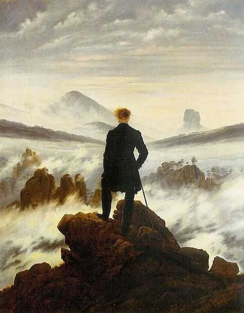 1. der Wanderer über dem Nebelmeer (caminante sobre el mar de nubes), pintado por Caspar David Friedrich.