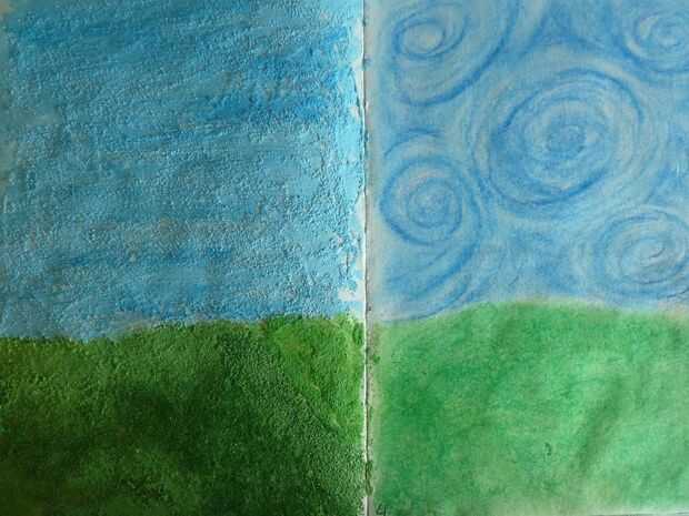 2. la naturaleza, una capa base de arena, hierba y flor pétalos, después de que pintó sobre.