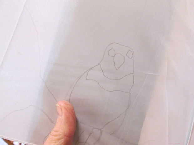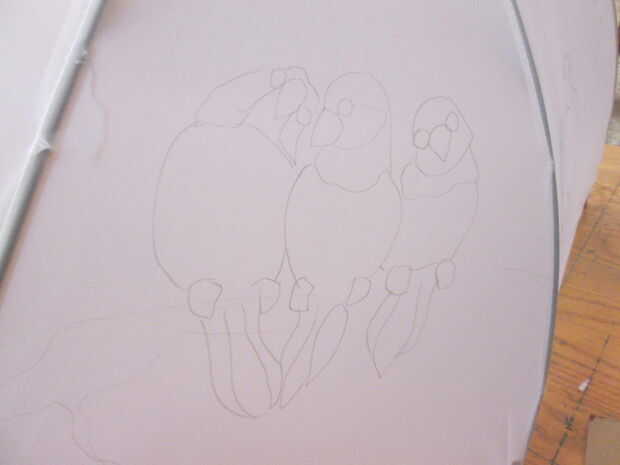 Con un lápiz dibujar la imagen sobre el paraguas. A veces sosteniendo un pedazo de cartón detrás del panel ayuda a mantener a la tela.