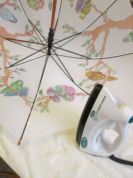 Hoy en mi camino al trabajo miró el cielo nublado y decidió pintar un "paraguas de lluvia púrpura"Paso 1: fuentes de Necesitaba un banco de paraguastonos de pintura de tela púrpuracepillos y una planchaPaso 2: pintura Abrí el paraguas y pintado