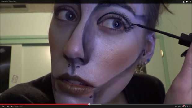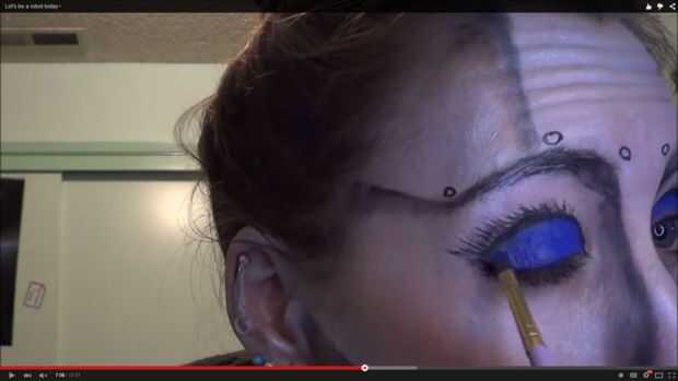 Delinear la forma que desea, añade pestañas, luego color en azul. Agregar una luz azul en el medio para que se vea como está brillando.