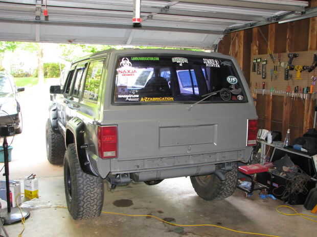 OK ya que mi jeep es un gran golpeador y tomarlo todoterreno, ¿qué mejor manera para pintar una decoloración golpeado jeep que con spraypaint? Opté por pintar para arriba como un vehículo de asalto de ejército y añadir unas pegatinas de zombie. Así q