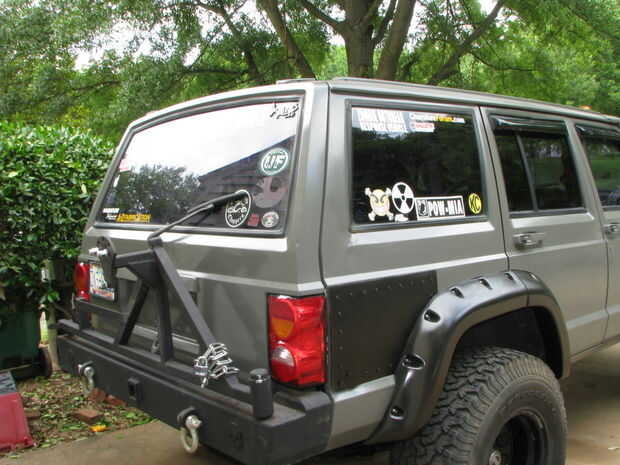 OK ya que mi jeep es un gran golpeador y tomarlo todoterreno, ¿qué mejor manera para pintar una decoloración golpeado jeep que con spraypaint? Opté por pintar para arriba como un vehículo de asalto de ejército y añadir unas pegatinas de zombie. Así q