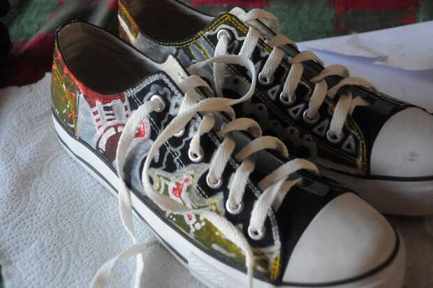Instructables me inspiró para incursionar en la pintura de zapato. Yo he visto muchos zapatos de gran arte gracia la galería virtual de instructables y pensé, por golly dé un torbellino! Aquí tenemos mi primer intento!Soy un profesor de arte para u