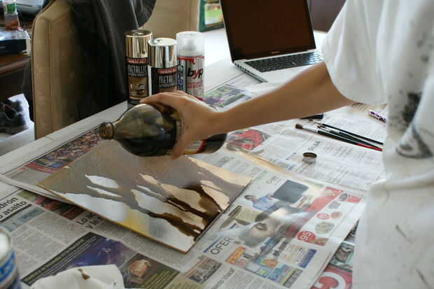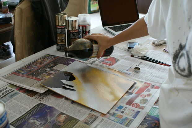 Una de las divertidas cosas que había visto alrededor era giratoria tipo algo donde podría poner una hoja de papel o camiseta, arrojar alguna pintura y comenzar a girar la mesa. Centrífuga fuerza lanza entonces hacia afuera de la pintura del centro,