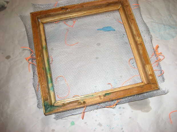 Porque quería mi foto buscando bastante este instructable, enmarca en el mismo marco utilizado para la pantalla.  Después de quitar el alambre y la pantalla, usé el vidrio como una guía para cortar la pintura.  El viejo cuadro y respaldo en la parte posterior del marco con unos trozos de cinta para sujetarlo todo pulg. de pato