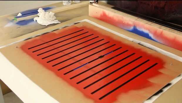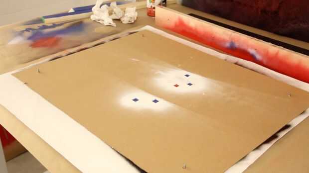 He intentado hacer mi pintura sobre lienzo con pintura en aerosol. Pongo algunos tornillos m3 a través de la lona y los orificios de esquina para mantener las plantillas alineadas.