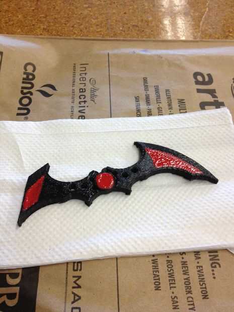 Cuando están pintando la superficie de tu cuenta de modelo haciendo un fósforo del color con el color PLA para un look totalmente coherente de su modelo terminado que está cubierto de pintura de esmalte. Aviso en la parte de la imagen de la derecha de la mitad (cerca del centro) quedó sin pintar para dar contraste con la apariencia de las áreas negras que fueron pintados con pintura de esmalte negro.