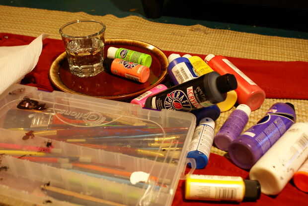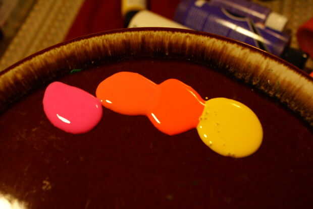 * Algo hacer pintura para mezclar (yo sólo uso una placa que no coincida con las otras planchas, a pesar de que se lava)