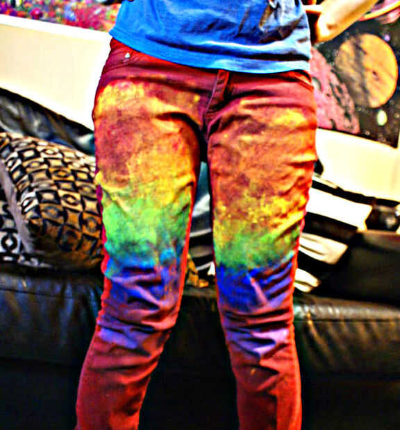 Pongo más pintura sobre ellos! Sé que parece que acaba de hacer el peor problema, pero me encantan mis nuevos pantalones de arco iris!