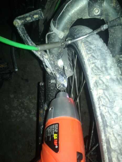 Quite los frenos y las zapatas de freno con llaves allen. No perder los tornillos, mantenerlos a salvo.