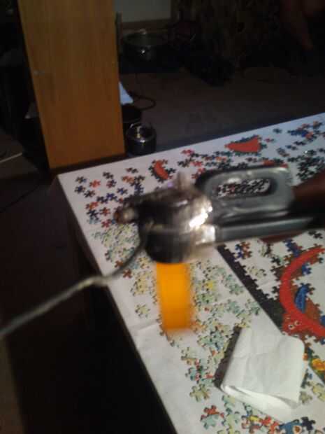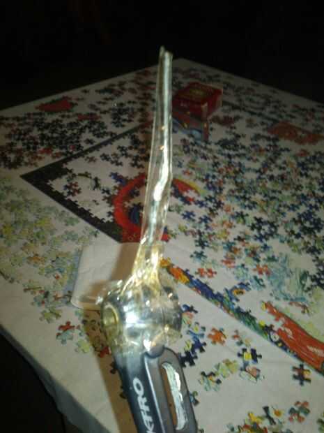 que me aburrido y decidió liberar a mi vieja luz de Dinamo,destripado y conectar la bombilla para 3 pilas AAA y llevar 2 conduce por el lado de la caja de luz,Entonces corrí los cables a ambos lados de la pinza de disco, para el brazo que no se mueve