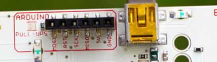 Conectar al otro extremo de las pinzas de cocodrilo a los cables de puente y palo en el makey makey en la ranura de D16
