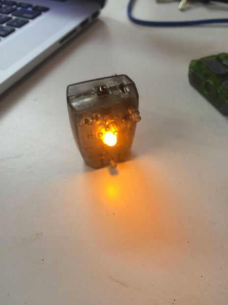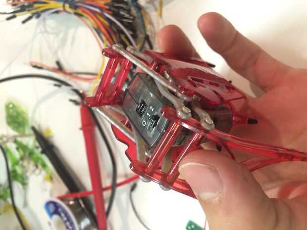 Pensé en hacerlo de forma inalámbrica, tal vez tener un arduino nano a bordo con la luz y un escudo de bluetooth, tal vez usando un radio xbee... Di cuenta que había una solución mucho más simple. Camino detrás de la ferretería me detuve juguetes r nosotros en busca de pequeños juguetes RC y encontré este robot relativamente barato que usa un controlador de infrarrojos.