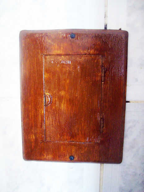 Se me ocurrió con este proceso (aunque estoy seguro que no inventarlo) para hacer una tapa de la caja de circuito metal oxidado se mezclan mejor con los acentos de madera en nuestro hogar. La caja nunca correctamente instalada y como resultado fue sólo un lío del que cuelgan los cables y expuestos los interruptores. Mi idea original era hacer una puerta de madera para cubrir este lío, pero después de buscar a través del almacenamiento de información arrojan, encontré la caja metálica que fue pensada para cubrir la caja.