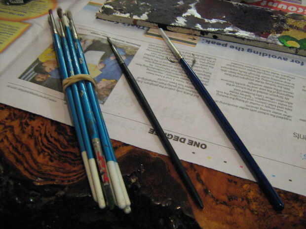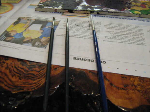 se deben utilizar un cepillo pequeño y un cepillo fino detalle. El pincel para pincel seco el metal y el cepillo para detalles finos para eso: fino detalle.