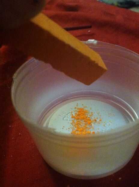 Utilizar cualquier herramienta que se desea presentar algún polvo de tiza en su taza de la mezcla.