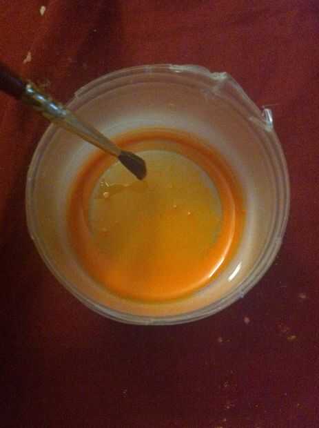 Si quieres grueso, agregar sólo un par de gotas y mezclar con el pincel. Si usted lo desea un poco más fino añadir más alcohol. Si se agrega demasiado, no te preocupes! Se evapora muy rápidamente así que usted puede dejarlo secar un poco!