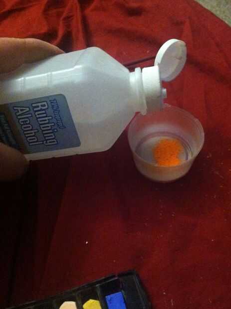 Añadir unas gotas de alcohol a su polvo de tiza para frotar.
