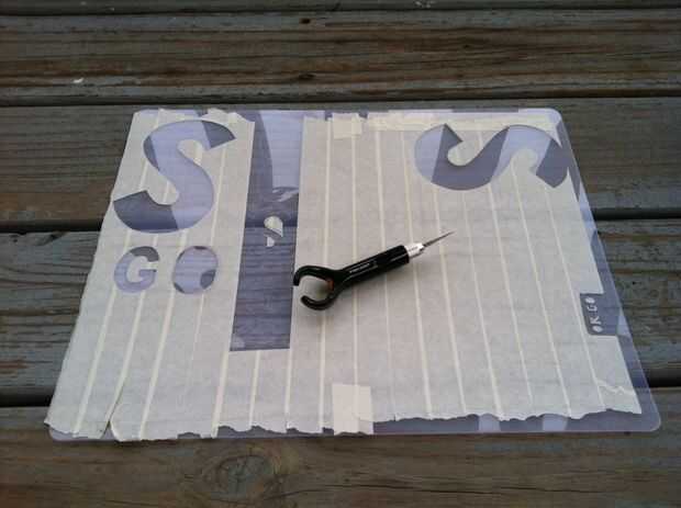 Lo que hice - y no dude en experimentar con otras técnicas, porque éste tenía sus problemas - era poner capas de cinta adhesiva en una tabla de cortar de plástico y cortar las letras que no eran rectas. El desafortunado efecto secundario fue que las letras guardar caer aparte, por lo que tenía que poner más capas de cinta adhesiva sobre ellos para mantenerlos juntos.