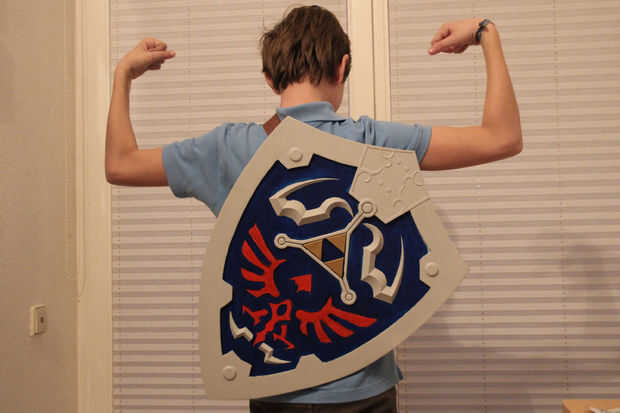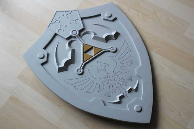 mi primo de 11 año de edad es uno de los mayores fans de Zelda sé. Así que cuando oyó que planeaba hacer un escudo hyliano para mí él pidió mi hacer uno para él, también. Realmente estaba motivado y se sentó con mi Dremel tratando de hacer los adornos. Incluso después de un día entero que no pude conseguir la simetría estaba buscando. Así que me puse a un lado el proyecto.