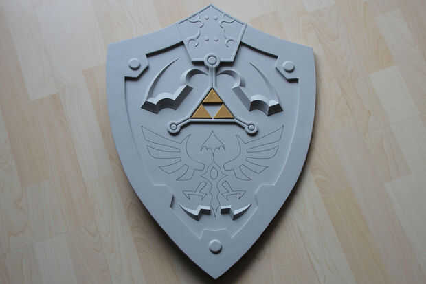 Es más fácil unir los triángulos después de pintar el escudo, por lo tanto me aerosol pintado oro, pero no pegarlos en su lugar.