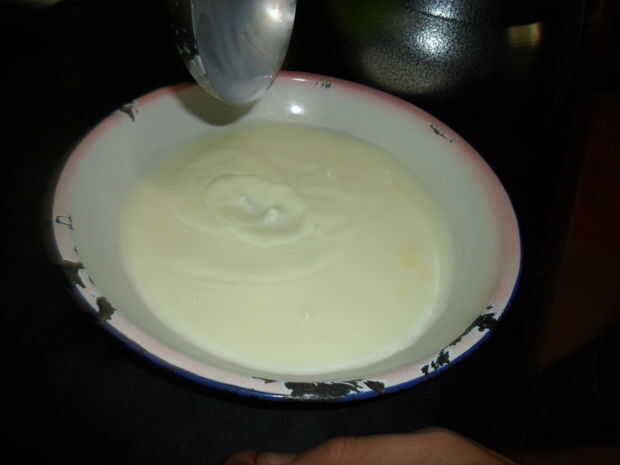 • Con la ayuda de un cucharón o una cuchara Verter leche en un plato pequeño formando capa.