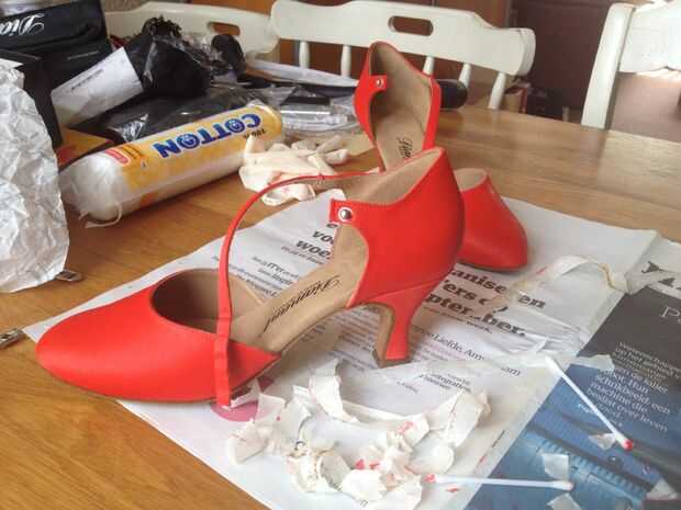 TIP 3: hisopos de algodón son muy útiles si tienes pintura en piezas de plástico, metal o goma de los zapatos. La parte inferior de la mayoría de los zapatos también debe ser fácil de limpiar que la mía. Mis zapatos tenían un fondo ante (porque significaron para bailar).