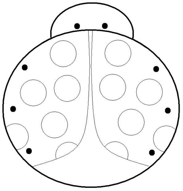 Empezamos por imprimir en el tamaño que queremos y cortar con las tijeras. Con lazos de cinta, pega el diseño hasta el metal que podemos rastrear alrededor de él con un marcador de tinta u otro objeto punzante. Una vez que se ha marcado alrededor, tomar el punzón y usando un martillo, perforar un agujero a través del papel en cada uno de los pies y los agujeros de la antena, por lo que hay una marca visible en el metal. Ahora podemos pelar apagado el diseño mariquita. Tomar las tijeras y recortar la forma básica de la mariquita. No te preocupes de conseguir cerca de los bordes marcados, que serán más fáciles una vez que separamos el mariquita de la hoja principal de metal.