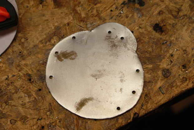 Tenemos que transferir el diseño al material. Para este proyecto estamos utilizando acero de calibre 22. Esto será lo suficientemente gruesa como para que sea resistente, pero no demasiado gruesa que no podemos cortarlo con unas tijeras y no demasiado difícil de doblar. Responderá muy bien a golpes de martillo.