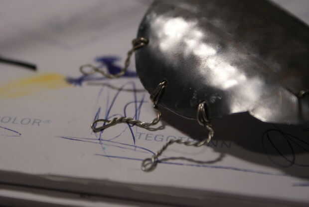 Tira de una longitud de alambre e introducir el extremo a través del orificio, a través de la parte inferior del error. Lazo alrededor del borde y a través del agujero dos veces y deje el exceso está en la parte inferior del error.