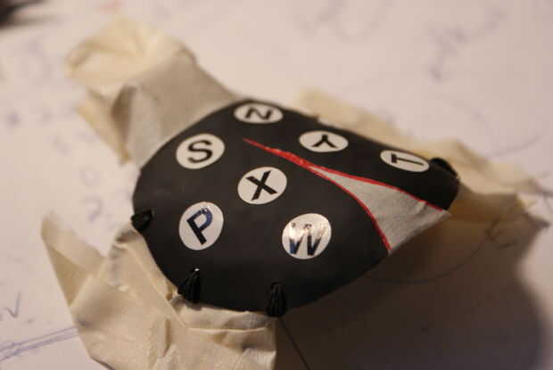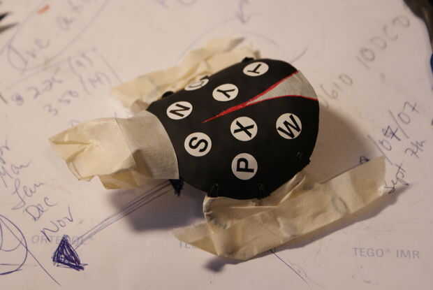 Unas 24 horas más tarde, cubren las patas y antenas con cinta de enmascarar. Cortar un trozo de cinta adhesiva para ir hasta la parte posterior y separar las alas de la mariquita. Haz algunos adhesivos redondos pequeños y ponerlos en la parte posterior para cubrir algunas áreas y puntos de la mariquita.