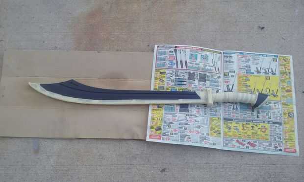 Un par de meses atrás asistí Megacon aquí en Florida. Quería hacer un traje para él, pero era un poco corto de tiempo. Por lo tanto, usé lo que tenía alrededor de la casa y algunos materiales extra comprados para crear esta espada de apoyo para él. N