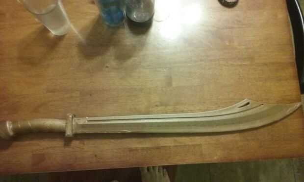 Un par de meses atrás asistí Megacon aquí en Florida. Quería hacer un traje para él, pero era un poco corto de tiempo. Por lo tanto, usé lo que tenía alrededor de la casa y algunos materiales extra comprados para crear esta espada de apoyo para él. N