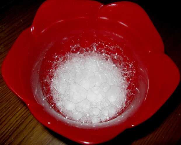 Cucharada cuatro cucharadas en el recipiente, luego añadir dos cucharadas de vinagre – Prepárate para el fizz! Los niños les encanta fizz. :-) Una vez que las burbujas han calmado abajo de añadir media cucharadita de jarabe de maíz y dos cucharadas de almidón de maíz. La maicena puede ser difícil de combinar y es la razón que recomiendo usar horquillas para mezclar.