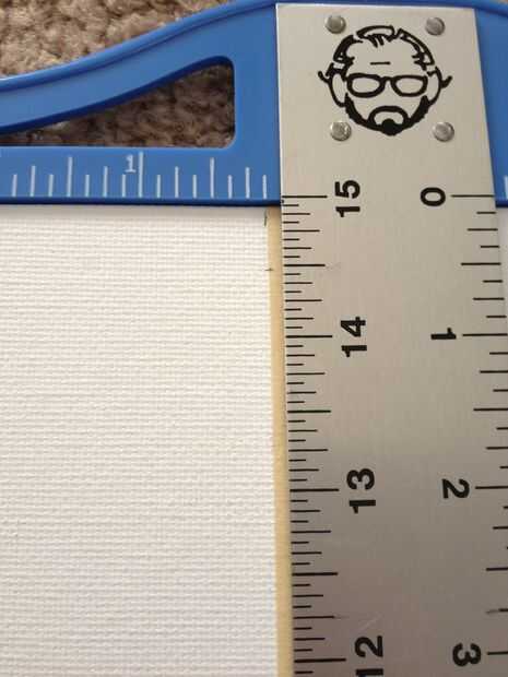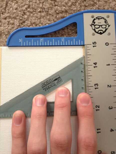 A continuación deslizar su triángulo hacia abajo de la regla, mantener la escuadra en el mismo lugar, hasta que alinee con su próxima marca marca y repetir las marcas de paso hasta que haya alcanzado la parte inferior de la lona (la última de ellas probablemente no puede llegar a la pieza izquierda de la cinta así que una línea sólida para que usted puede alinear la cinta correctamente).
