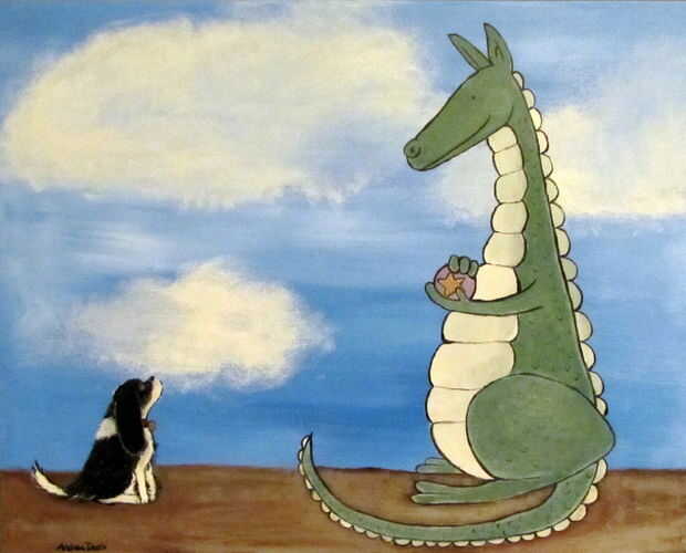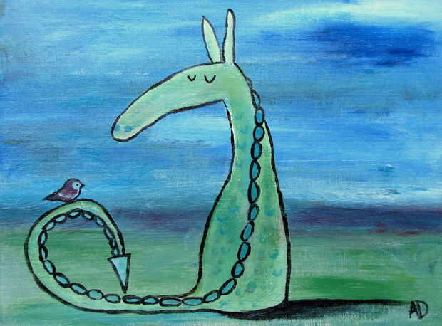 Como con la mayoría de pinturas, el fondo es importante para establecer el estado de ánimo y es más fácil if pintado primero. Usar muchos colores brillantes y evitar la mezcla de negro en su paleta es una buena manera de obtener un fondo animado para tu dragón. Una vez seco el fondo, puede utilizar blanco para delinear la forma de su dragón y llegar justo antes de empezar a añadir color y profundidad.