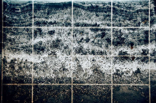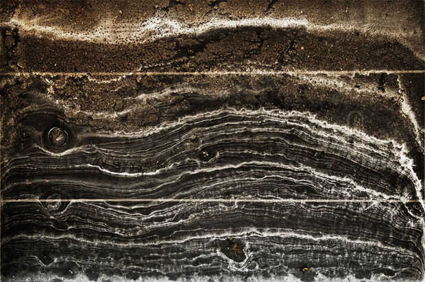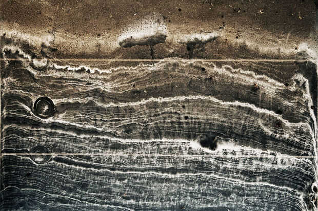 Durante el experimento de mi, no he podido volver a la página de la colección durante un período de dos semanas. Cuando volví el agua de las tinas había evaporado completamente. Las composiciones que resultó en el fondo de las tinas eran sorprendentes. El residuo en el fondo de mi bañera se había reconstituido en una formación cosmológica; una especie de reconstrucción de sus orígenes.
