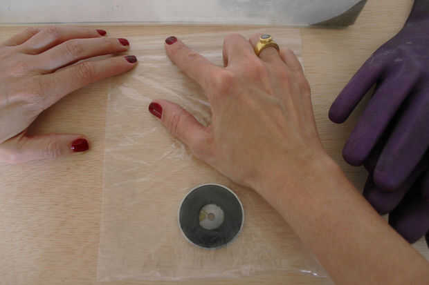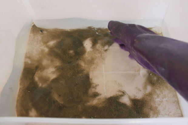 2. use una mano enguantada para 'molestar' a los restos que se han asentado en el fondo de su bañera.