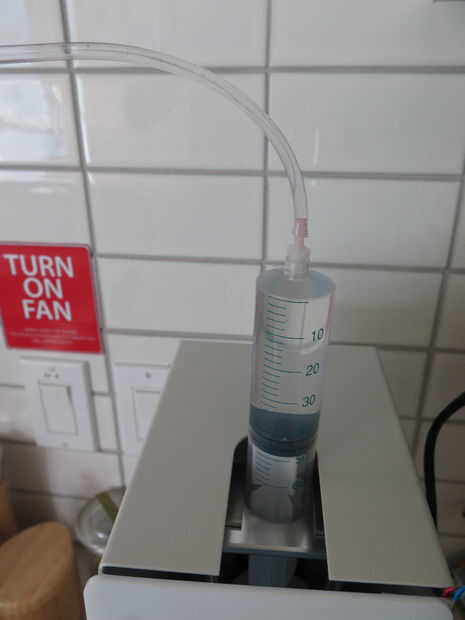Para la primera prueba, estaba interesado en utilizar la extrusora ya disponible (en la búsqueda de que la impresora tan abierto como sea posible). Es por eso que decidí hacerlo con una extrusora de Discov3ry . Primero necesito para configurarlo. Prestando especial atención a los pasos por valor de configuración de mm. Por eso carga el estirador con agua y ver cómo un software de "push" de 10 mm traducido al desplazamiento de agua. Utilizando una regla seguí midiendo el desplazamiento de agua y ajuste de los pasos de estirador por mm hasta que conseguimos el derecho de desplazamiento. Me conformé con un valor de 6775 pasos por mm. Pero totalmente dependerá de la configuración de la impresora, micropasos y así sucesivamente.