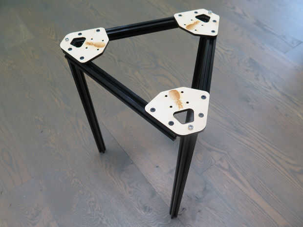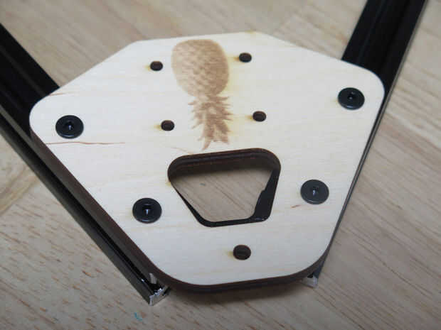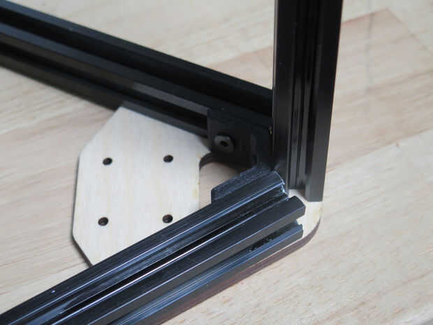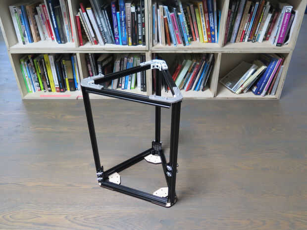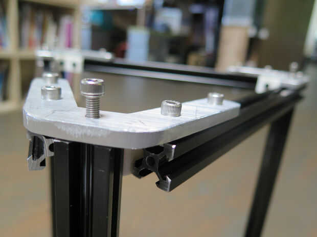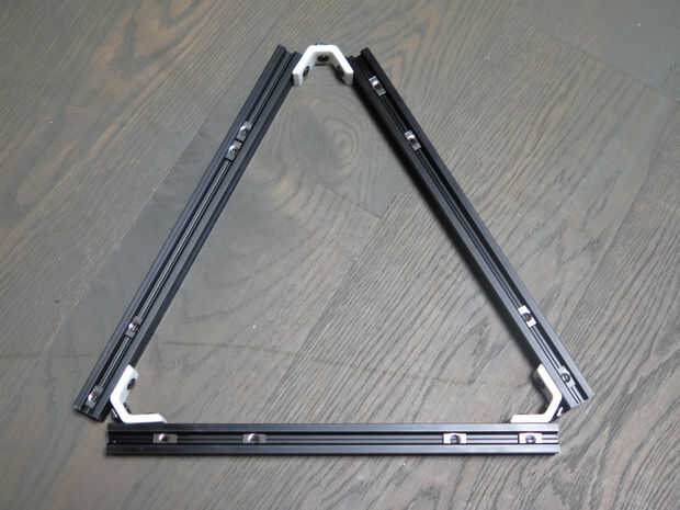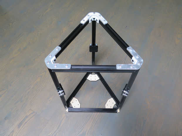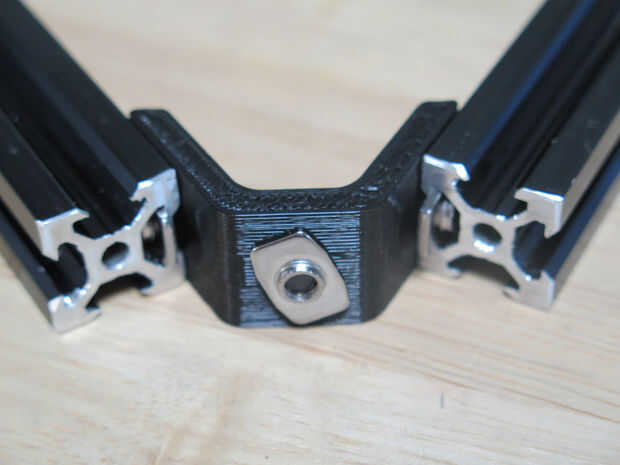 Decidió no utilizar las esquinas de ángulo de aluminio porque sentía que las piezas de impresora 3d eran más precisas y tuvieron fuerza suficiente para la estructura.
