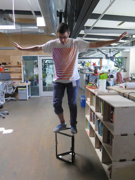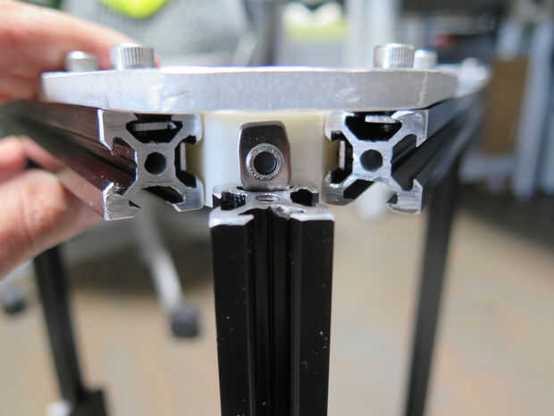 - Deslice el ángulo las esquinas libres las tuercas en t en las vigas verticales (lugar sobre la estructura del taburete invertido)