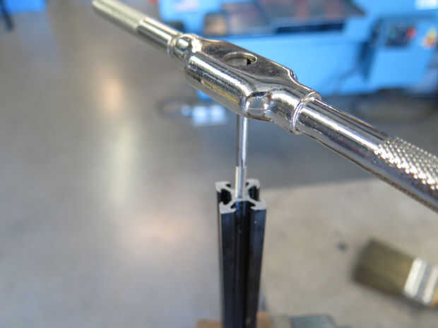 - Inserte una barra vertical en el pasado t-tuerca libre desde la esquina del ángulo