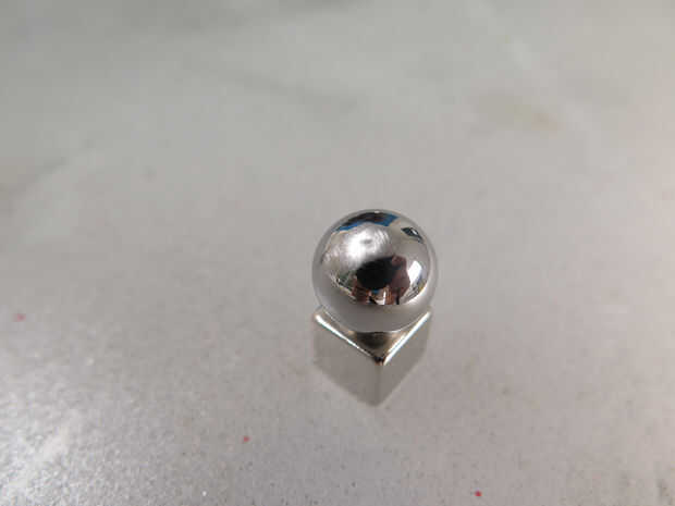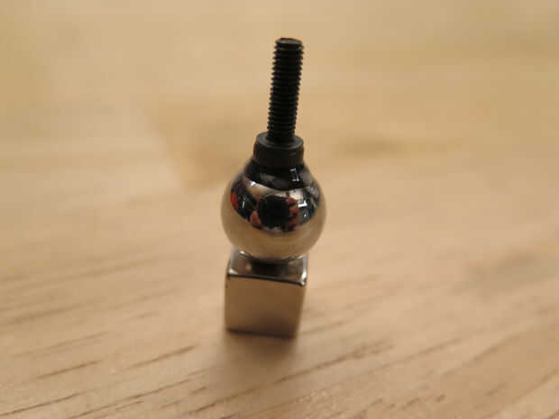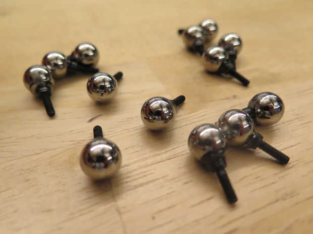 Preparar los tornillos M3 de 10mm y 12 mm bolas de cromo diámetro. Primero Lije levemente las superficies antes que pegar con epoxi. La arena la cabeza del perno y un área pequeña de la bola (del tamaño de la zona de cabeza de perno). Una vez que estén listos, colocar la bola de cromo encima de un imán para mantener en su lugar. Remoje el perno epoxi bien mezclado y colóquela encima de la pequeña zona de arena en la bola. El imán se sostenga el tornillo demasiado y ayudar a juntar ambos.