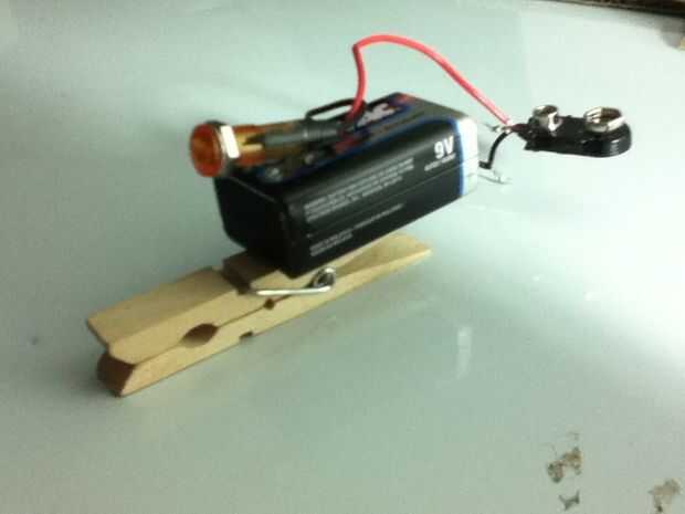 Ahora pegar el LED a la batería en un forward de pequeño ángulo.