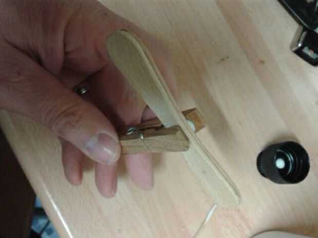 en primer lugar, necesita una clavija de ropa,ArchivoGoma/pegamentoY un cuchillo.Paso 1: La corte Tenga cuidado de no cortarse.Así que dibujar las líneas que se muestra en la imagen, asegúrese de que el corte superior es recto.También, asegúrese de q
